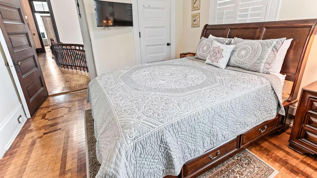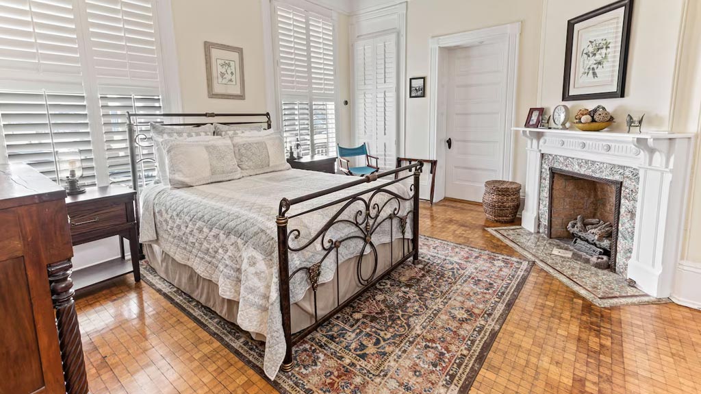 Beautiful kitchen is complete with new oven, range, microwave, two dishwashers, butler's pantry and fireplace. The dining room table seats ten guests. The original grand staircase takes you to the living quarters where you will find meticulously restored bedrooms, each with its own charm.